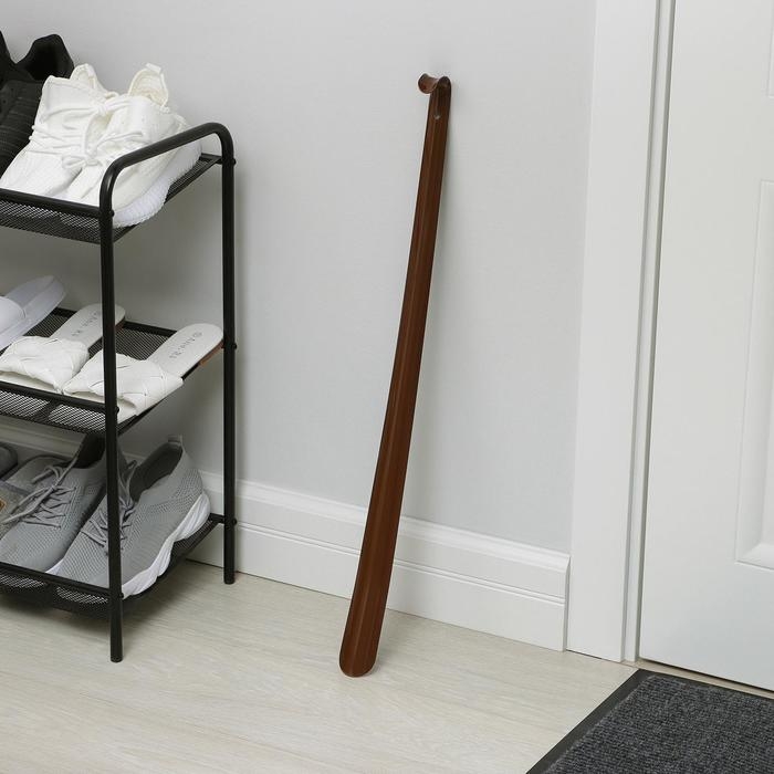 Ложка для обуви деревянная, с петелькой, 30×4 см, коричневая
