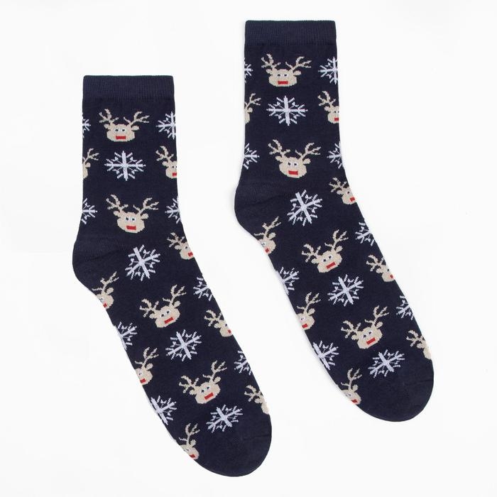 Носки новогодние мужские «Олени и снежинки» цвет синий, размер 27