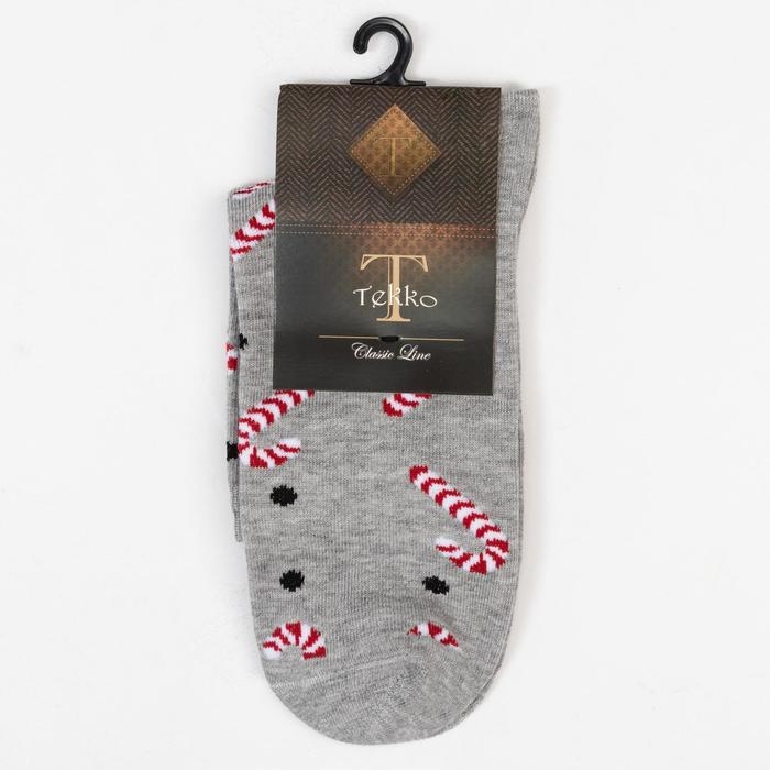 Носки новогодние мужские «Леденцы» цвет серый, размер 25