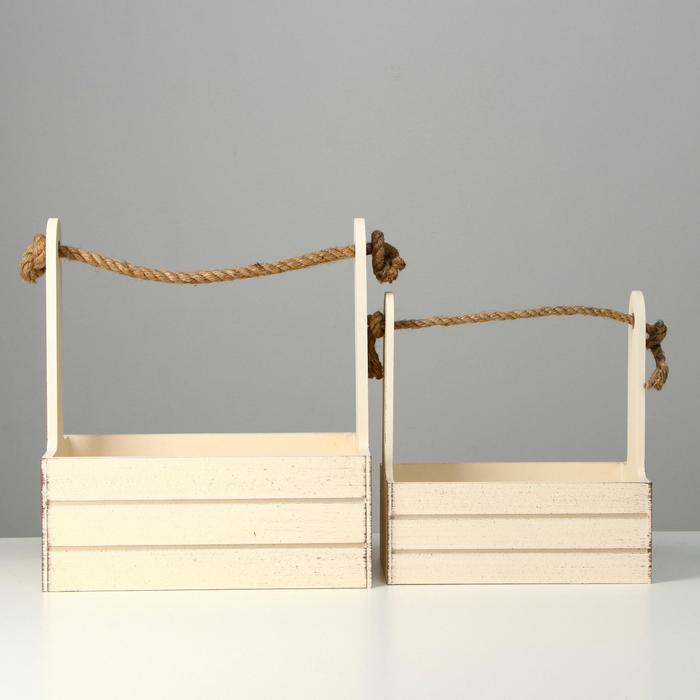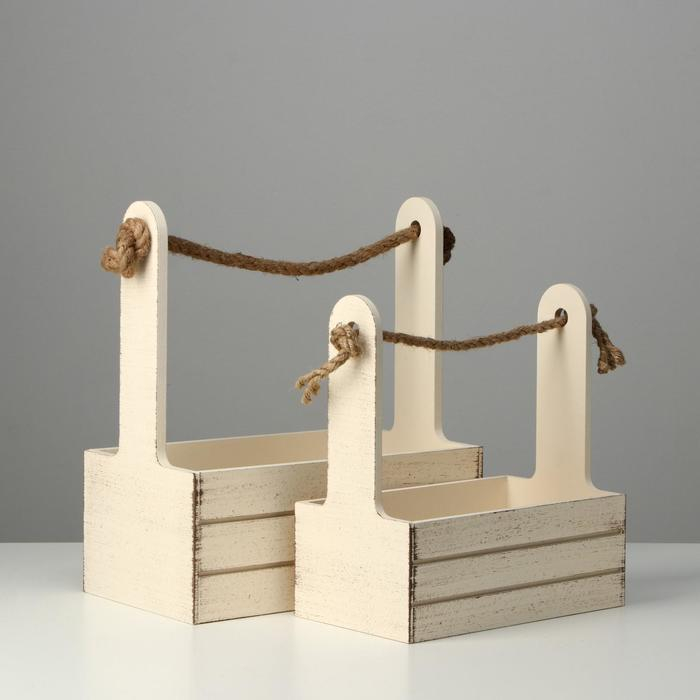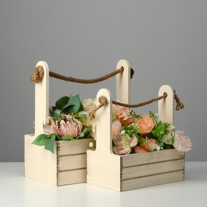 Набор кашпо деревянных 2 в 1 (25.5×15×30; 20×12×23) "Прованс", бежевый