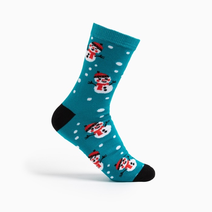 Носки новогодние мужские«Снеговики» цвет бирюзовый, размер 25