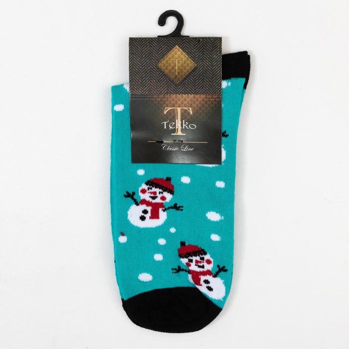Носки мужские«Снеговики» цвет бирюзовый, размер 27
