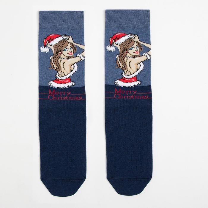 Носки мужские, цвет тёмно-синий меланж, размер 27-29