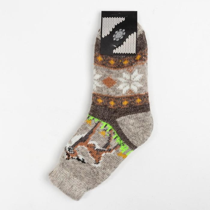 Носки женские новогодние шерстяные "Олень", цвет темно-серый, размер 23