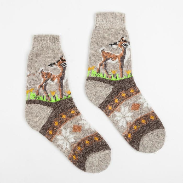Носки женские новогодние шерстяные "Олень", цвет серый, размер 25
