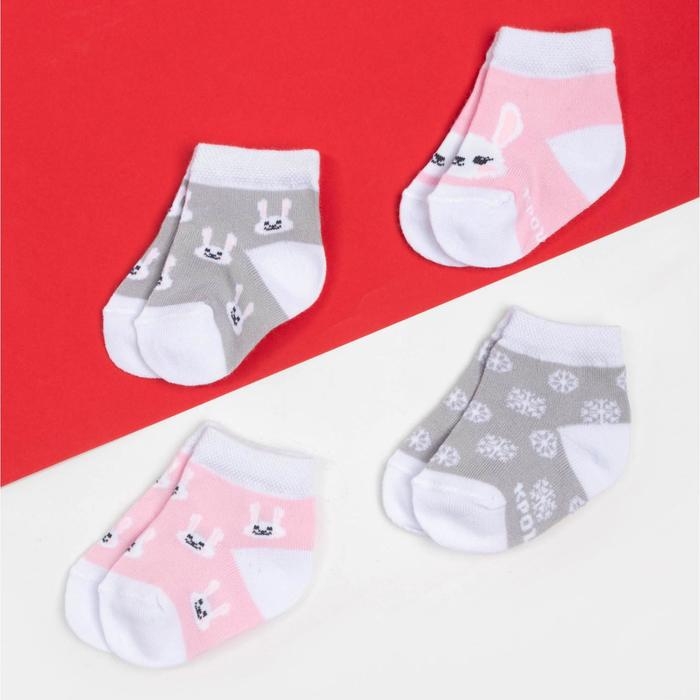 Набор новогодних носков для девочки Крошка Я «Зайчик», 4 пары, 8-10 см