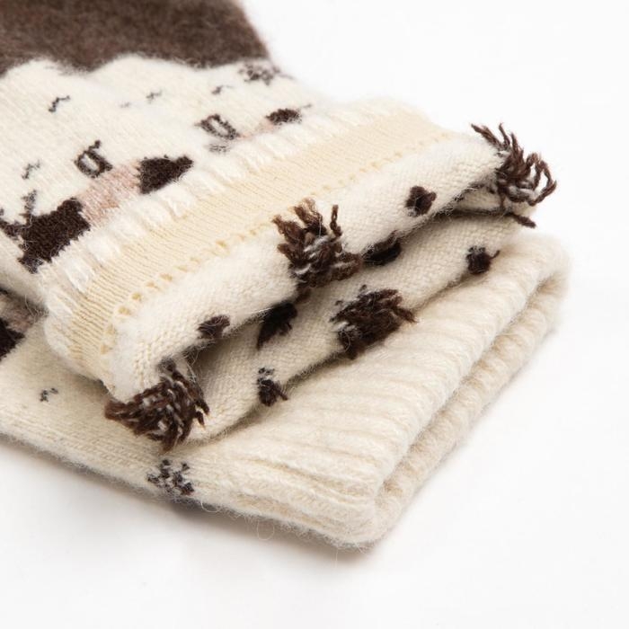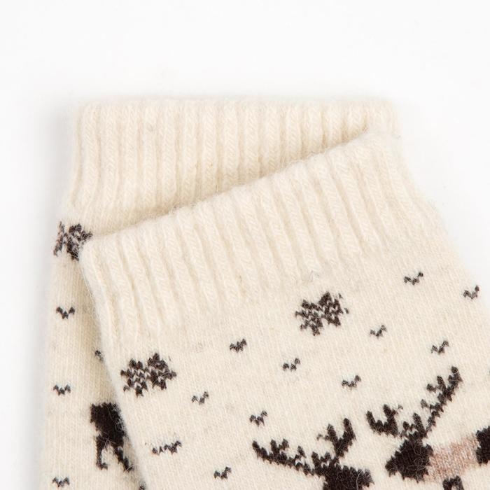 Носки женские из монгольской шерсти, цвет шоколад/олени, размер 23 (34-36)