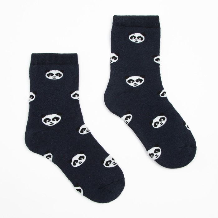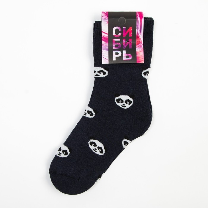 Носки женские махровые «Панда», цвет тёмно-синий, размер 23-25