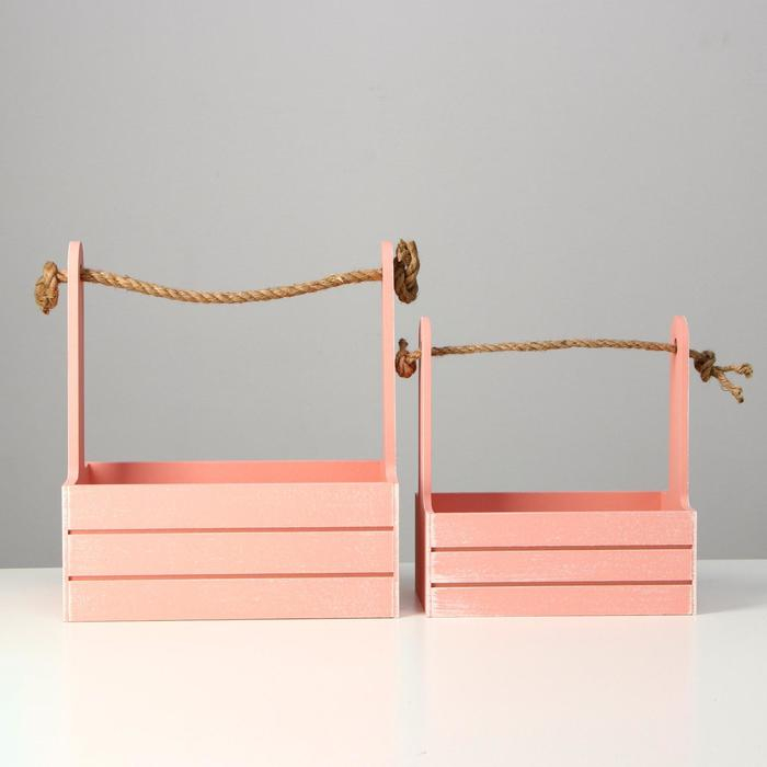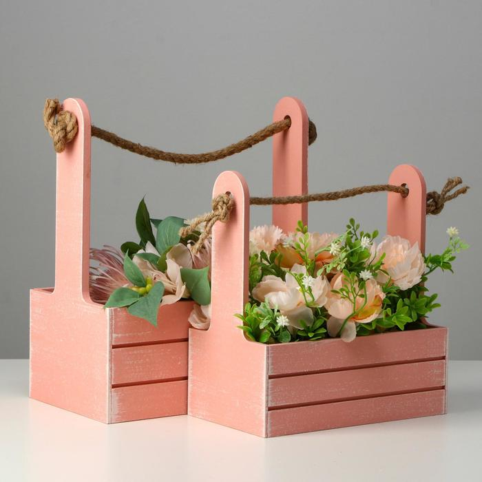 Набор кашпо деревянных 2 в 1 (25.5×15×30; 20×12×23) "Прованс", розовый