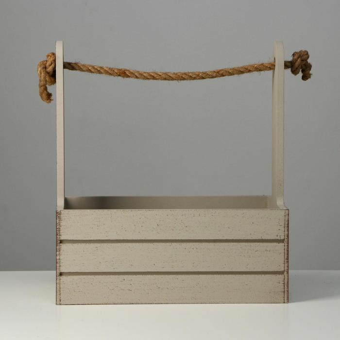 Кашпо деревянное 25.5×15×30 см "Прованс", ручка канат, светло-серый