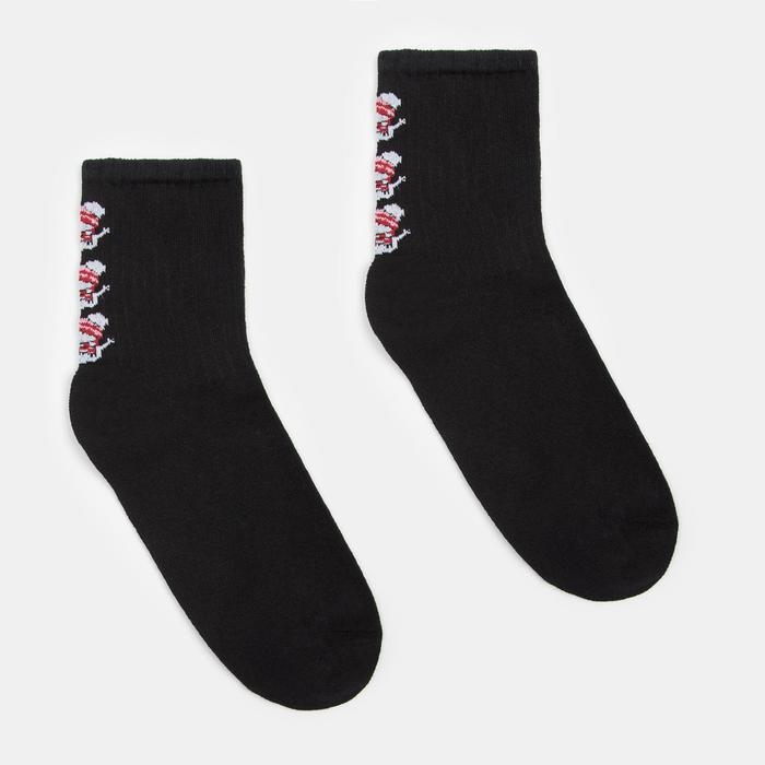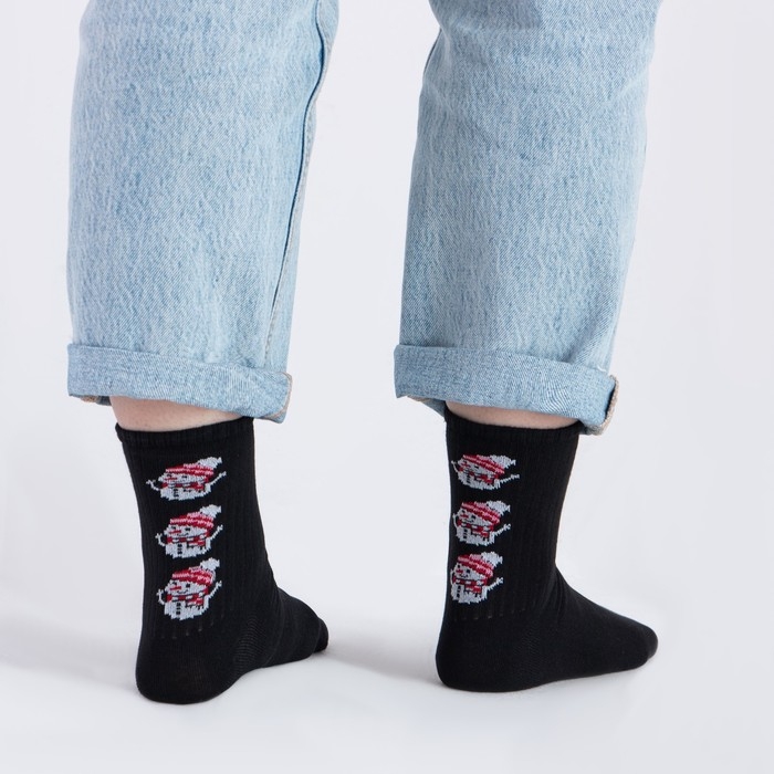 Носки женские новогодние "Снеговики" MINAKU цвет чёрный, размер 36-37 (23 см)
