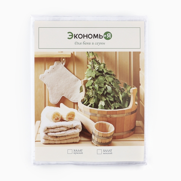 Халат вафельный мужской Экономь и Я рукав 3/4 цвет белый размер 58-60, 100% хлопок, 200 г/м2