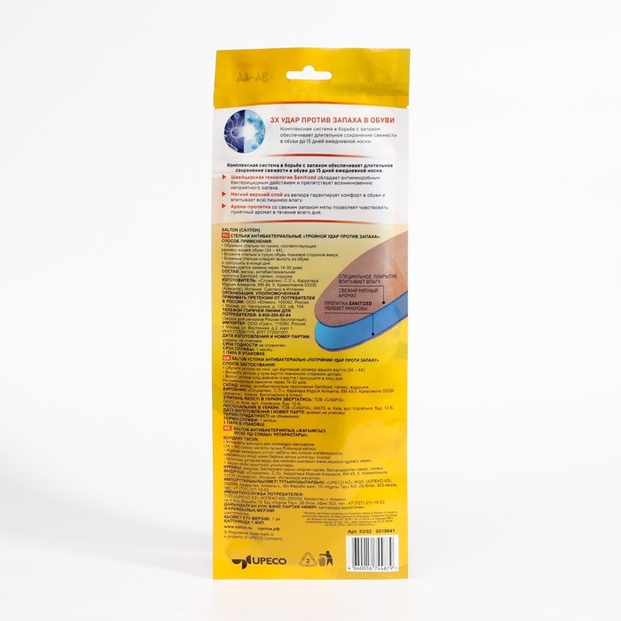Стельки для обуви антибактериальные Salton, Тройной удар против запаха, размер 34-45