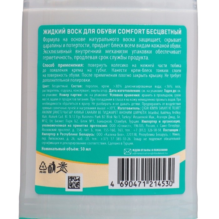 Жидкий воск для обуви Vister Comfort, бесцветный 50 мл