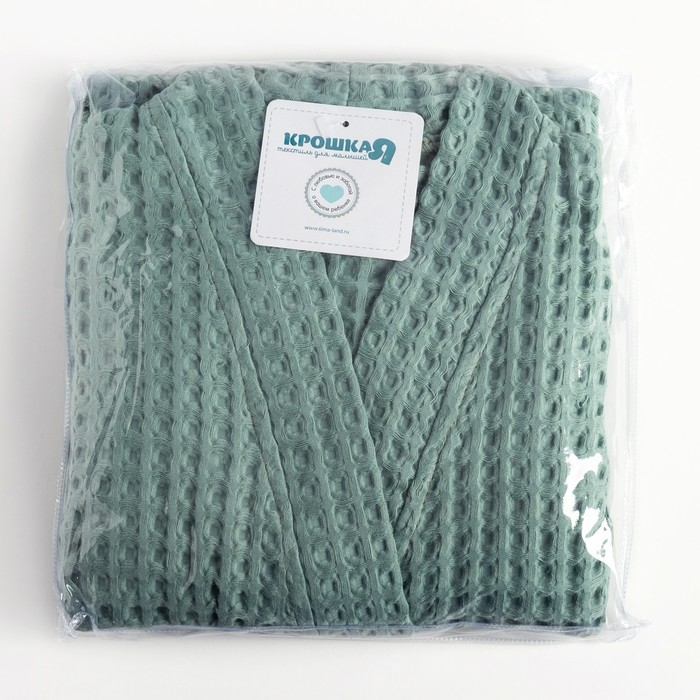 Халат вафельный детский Крошка Я "Boho" размер 30 (98-104 см) цвет мятный, 100% хлопок 290 г/м2
