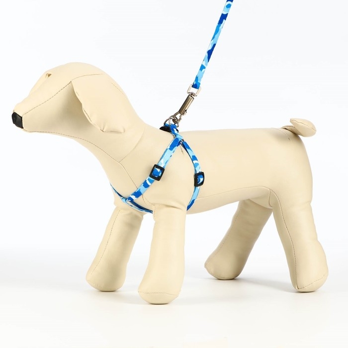 Комплект "Камуфляж", ширина 1 см,шлейка 21-35 см,поводок 120 см,капрон,капрон, сине-голубой