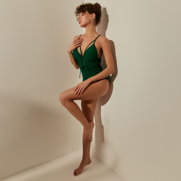 Купальник женский слитный MINAKU на шнуровке, цвет зелёный, размер 42