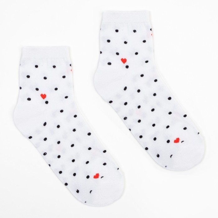 Носки женские MINAKU «Точки и сердечки», цвет белый, размер 36-37 (23 см)