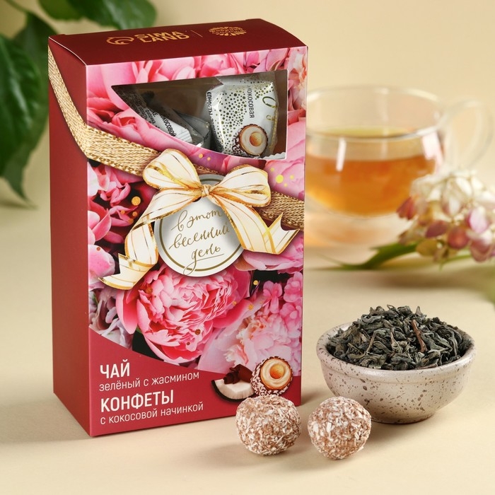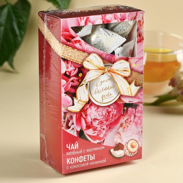 Подарочный набор «Весенний день»: чай 50 г, конфеты 100 г