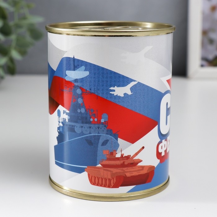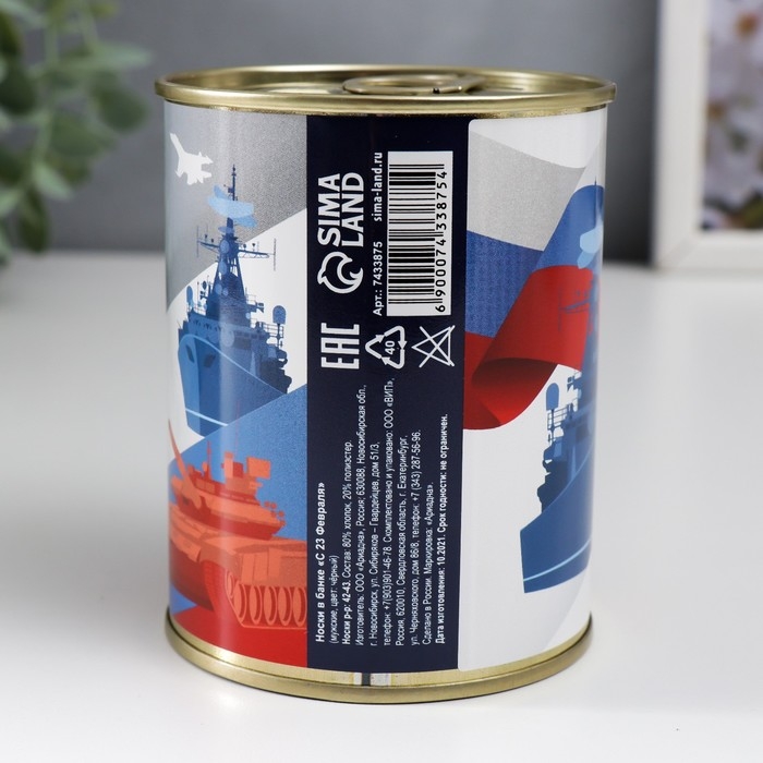 Подарочные носки в банке «С 23 Февраля (триколор-техника)», (внутри носки мужские, цвет чёрный)