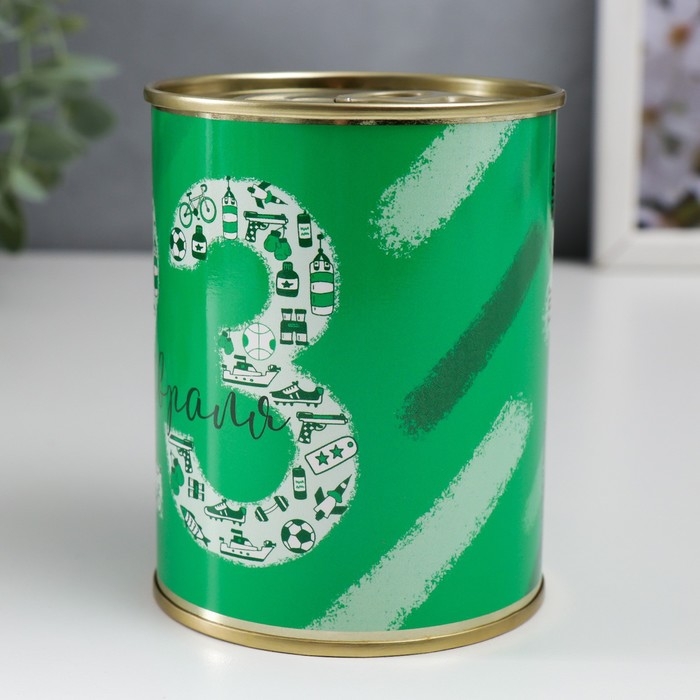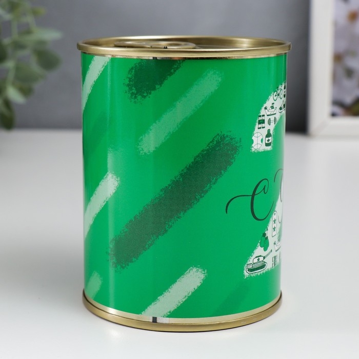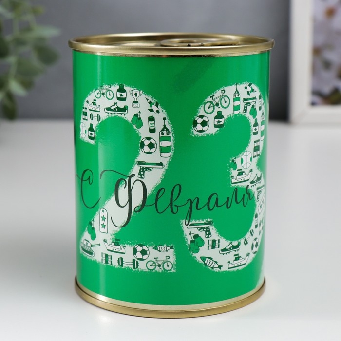 Подарочные носки в банке «С 23 Февраля (цифры-картинки)», (внутри носки мужские, цвет чёрный)