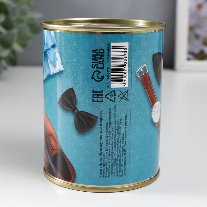 Подарочные носки в банке «Лучшему папе, с 23 Февраля», (внутри носки мужские, цвет чёрный)