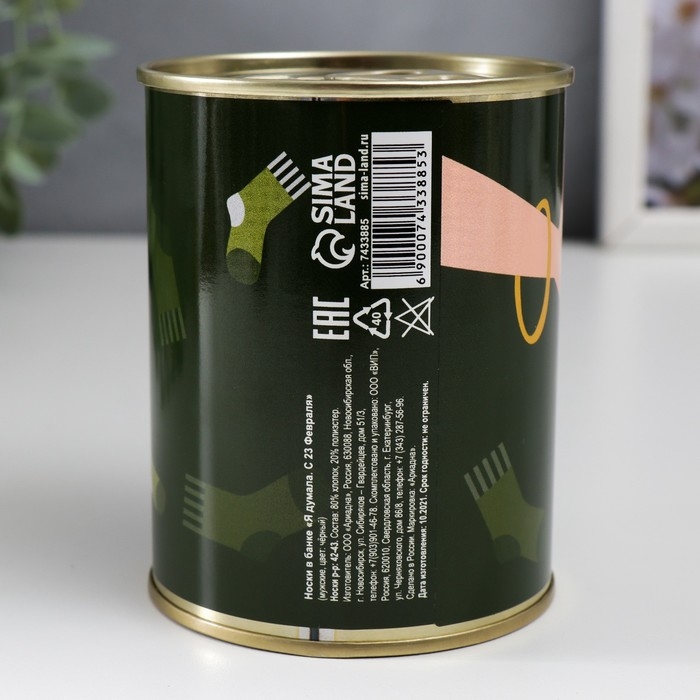 Подарочные носки в банке «Я думала. С 23 Февраля», (внутри носки мужские, цвет чёрный)