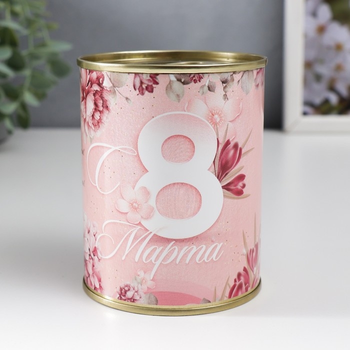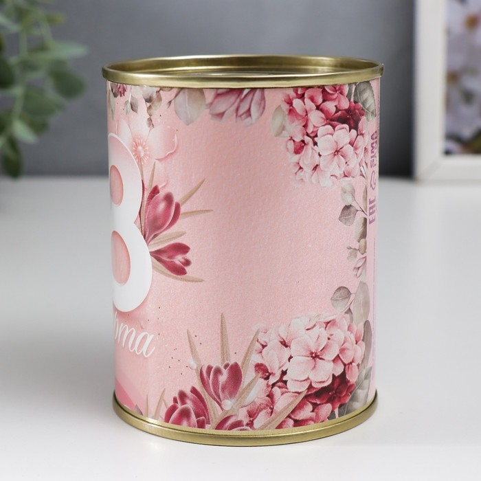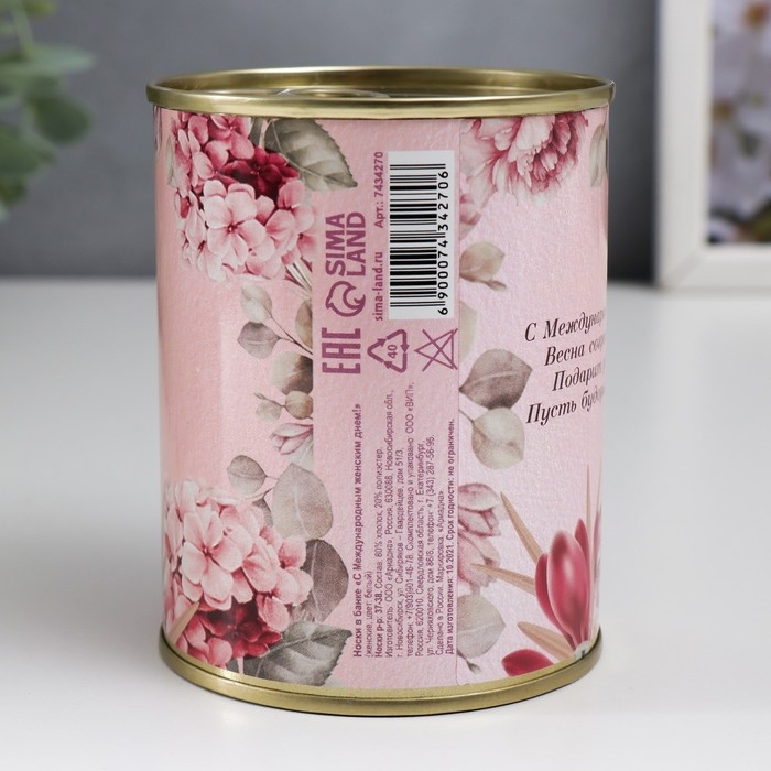 Носки в банке "С международным женским днем!" (внутри носки женские, цвет белый)