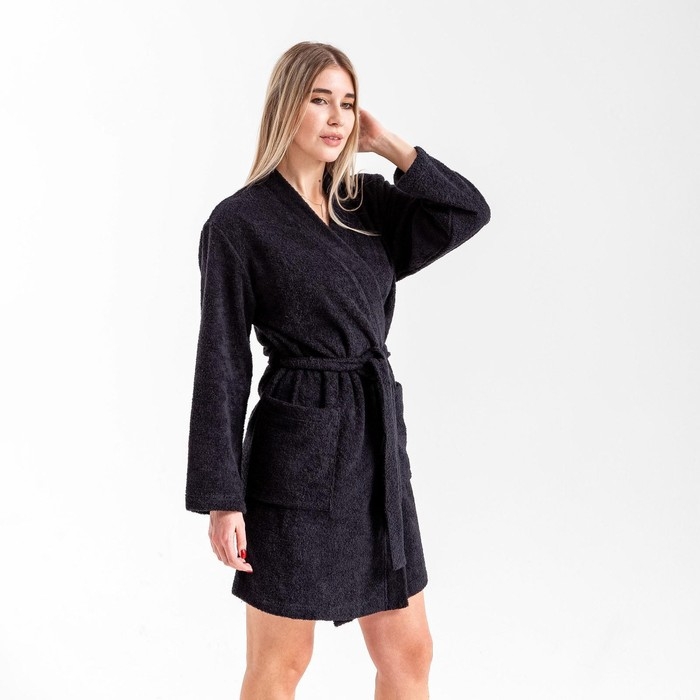 Халат махровый Экономь и Я женский, р 42-44 цвет черный, 100% хл с AIRO, 320 г/м2