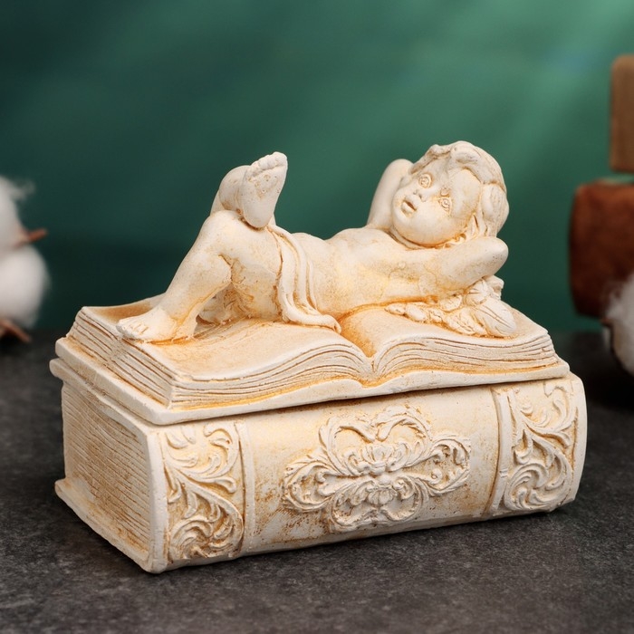 Шкатулка "Ангел лежит" позолота, 9х7х6см