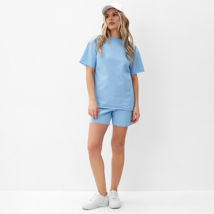 Комплект (футболка, шорты) женский MINAKU: Casual Collection, цвет голубой, размер 48