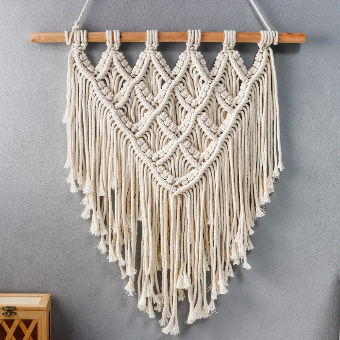 Панно настенное в технике макраме "Шаль" натуральный 55х50 см