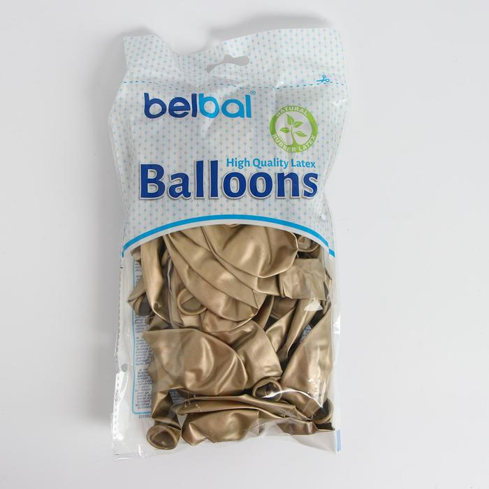 Шар латексный 14", хром Glossy, золото, набор 50 шт.