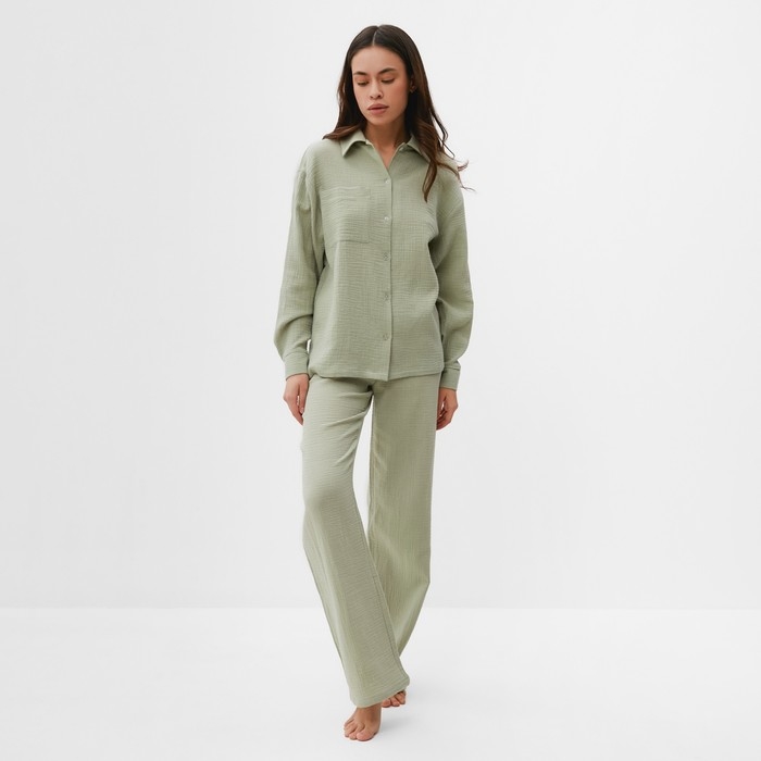 Пижама женская (рубашка и брюки) KAFTAN "Basic" размер 52-54, цвет зелёный