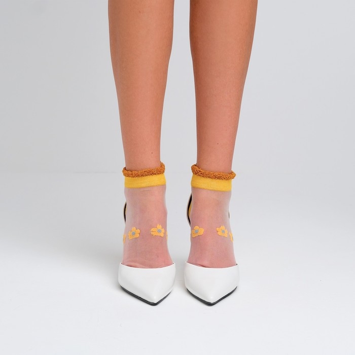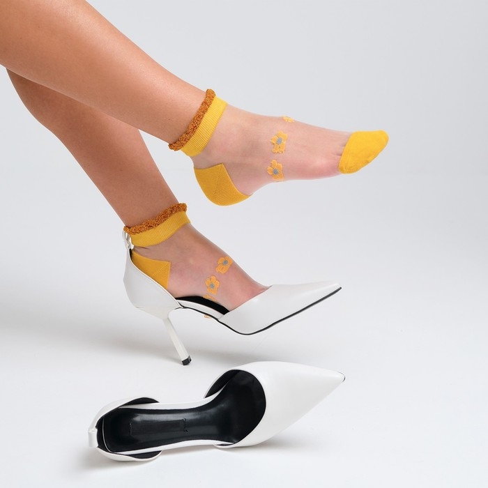Носки женские стеклянные MINAKU «Цветы», цвет жёлтый, размер 35-37 (23 см)