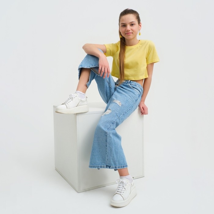 Футболка для девочки укороченная KAFTAN "Selfie", рост 146-152, цвет жёлтый