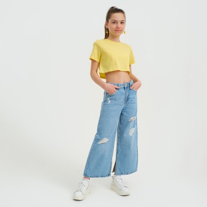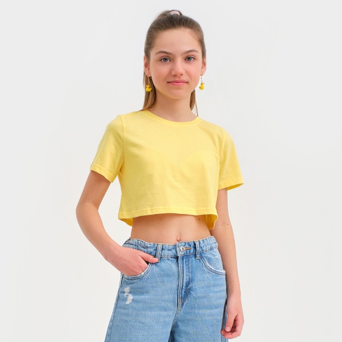 Футболка для девочки укороченная KAFTAN "Selfie", рост 164-170, цвет жёлтый