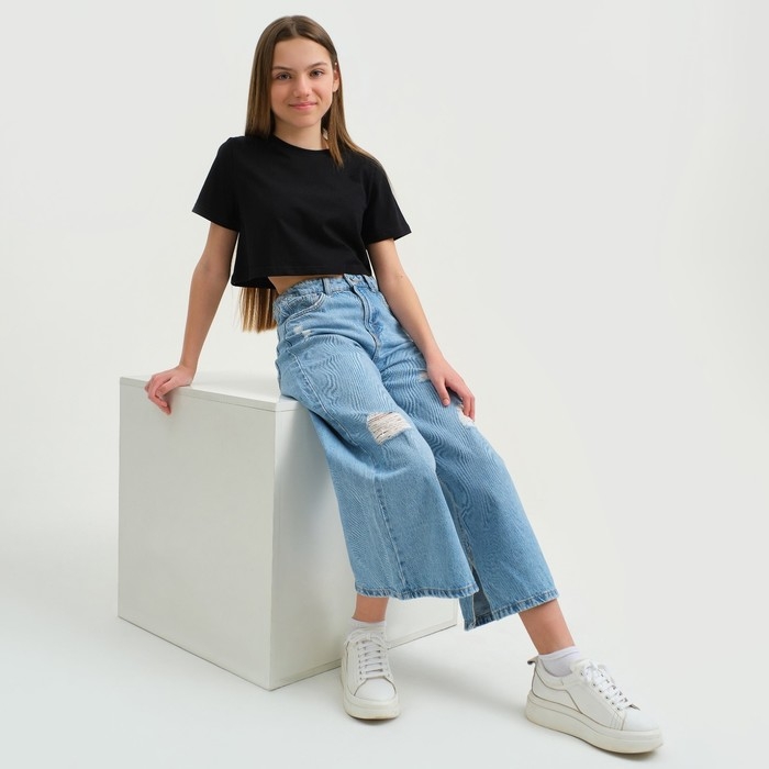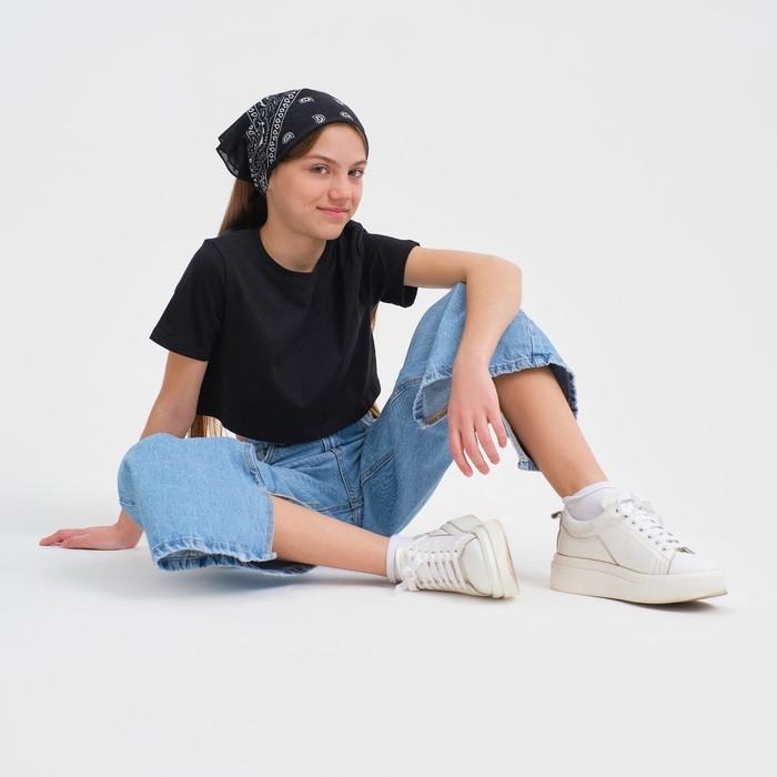 Футболка для девочки укороченная KAFTAN "Selfie", рост 164-170, цвет чёрный