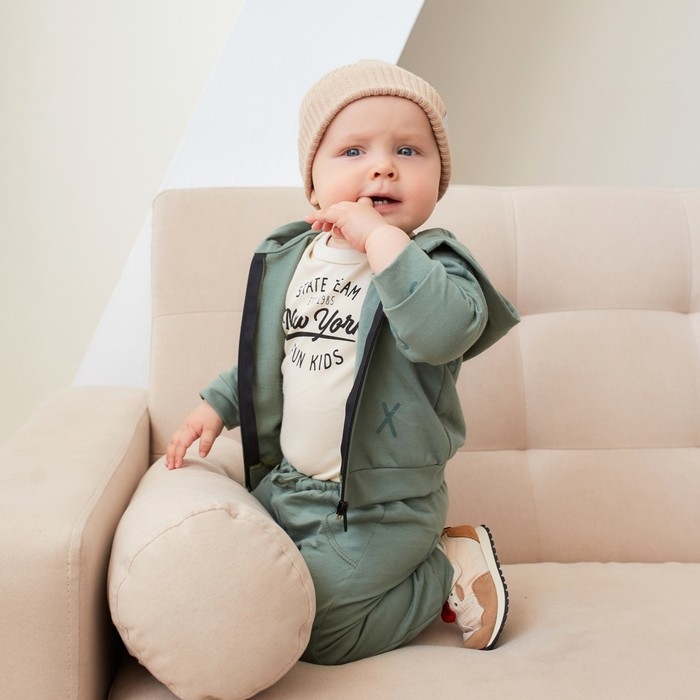 Боди с длинным рукавом Крошка Я "NY", рост 86-92 см, цвет бежевый