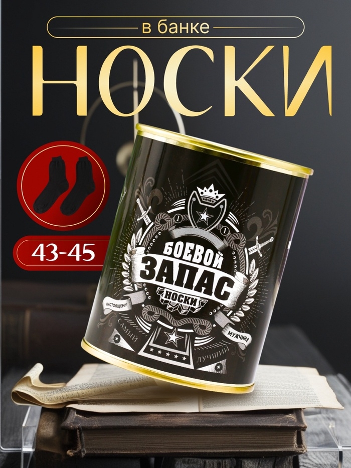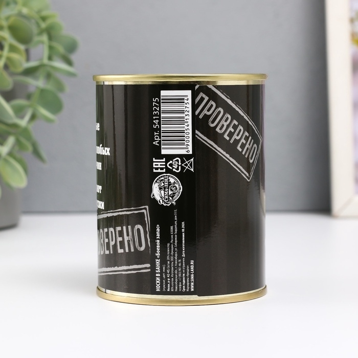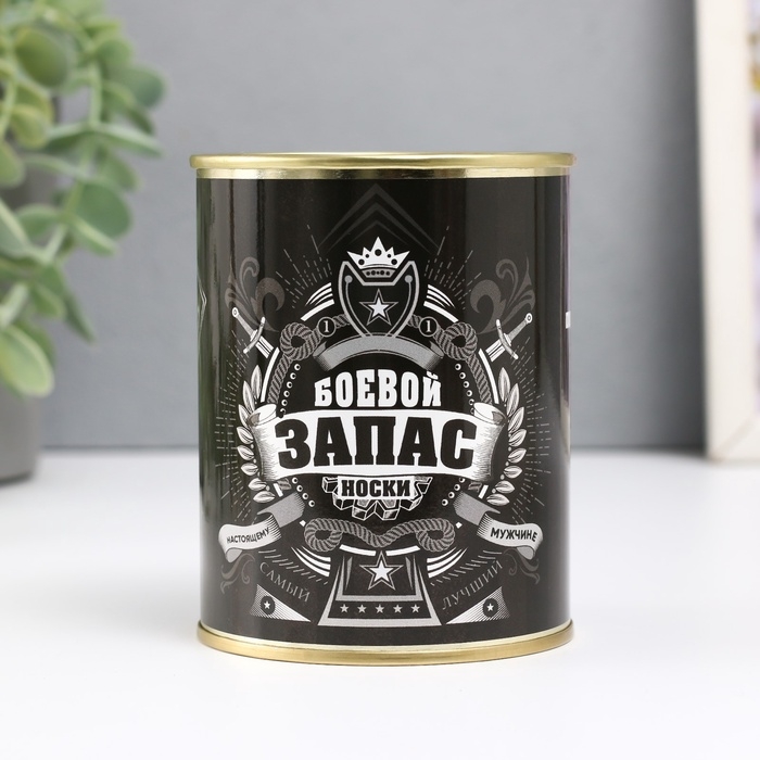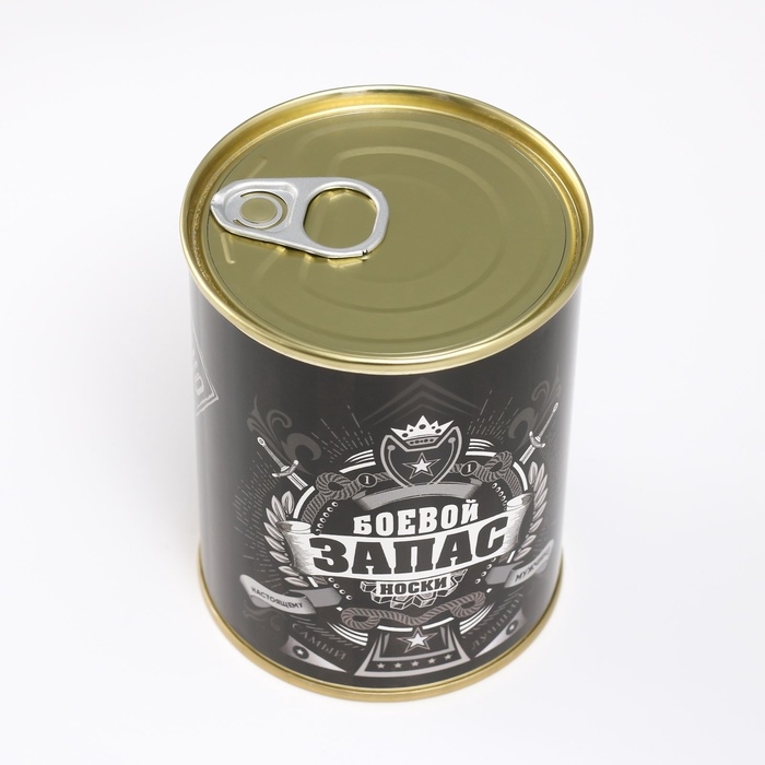 Подарочные носки в банке «Боевой запас», (внутри носки мужские, цвет чёрный)