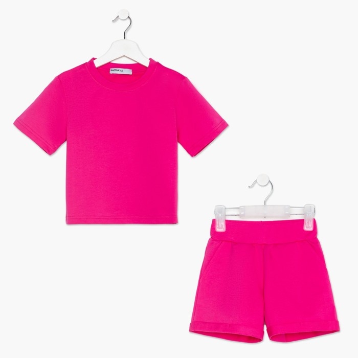 Комплект детский (футболка, шорты) KAFTAN "Basic line" размер 36 (134-140), цвет розовый
