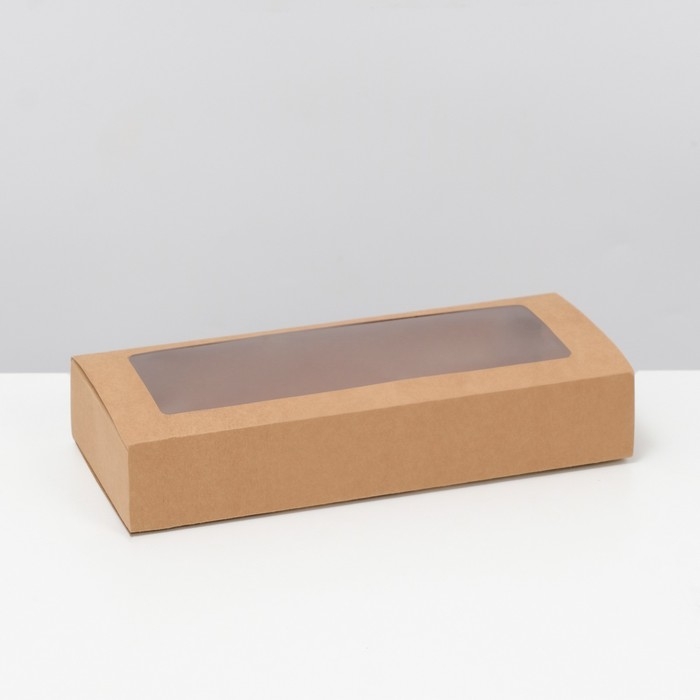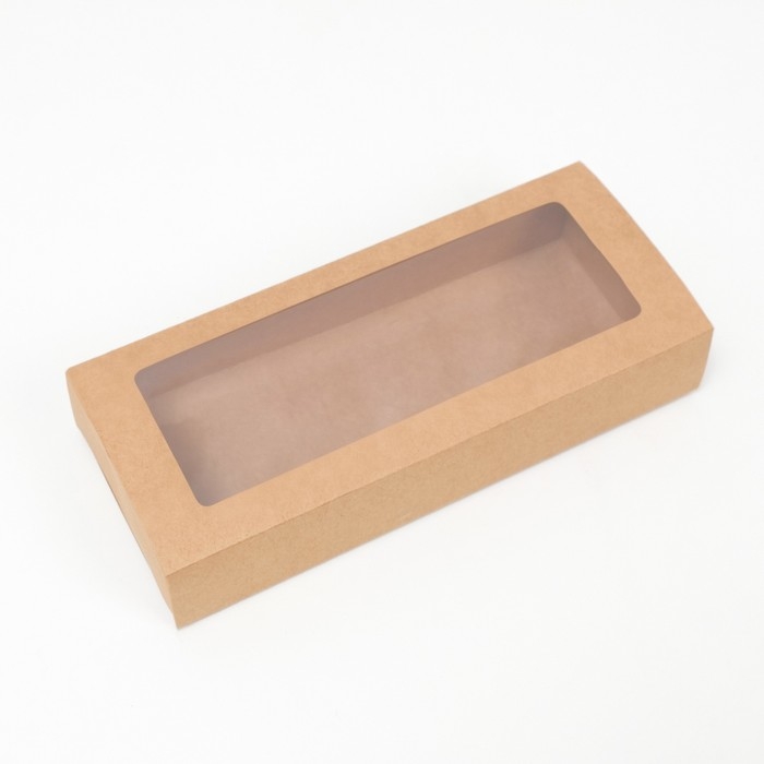 Коробка складня, пенал, с окном, крафтовая, 27 х 12 х 5 см