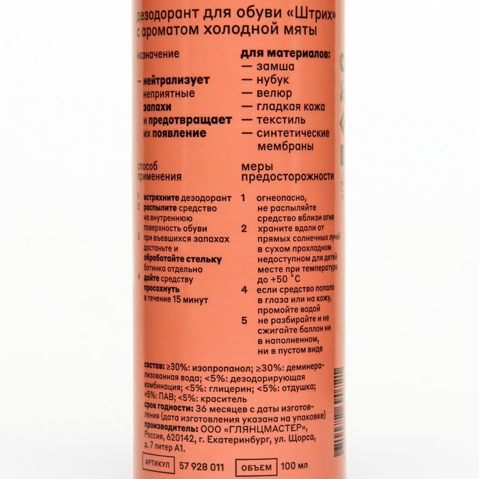 Дезодорант придаст обуви ненавязчивый аромат холодной мяты.