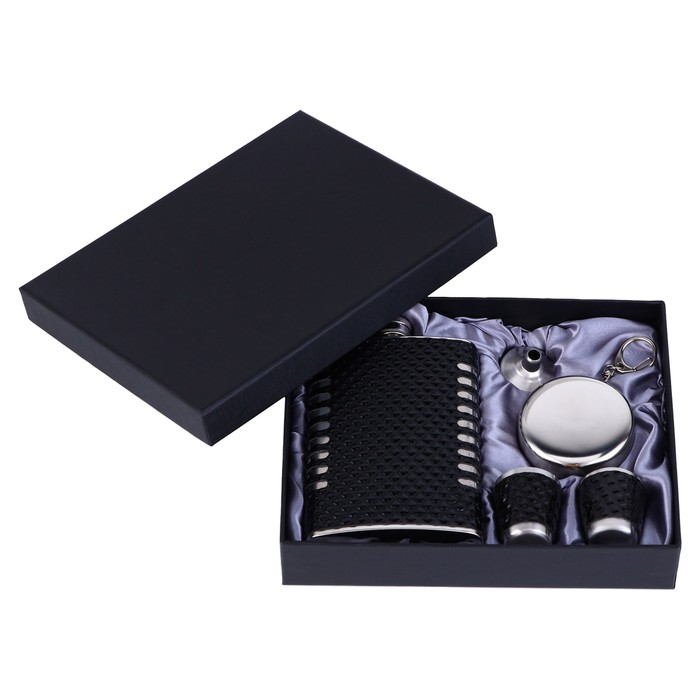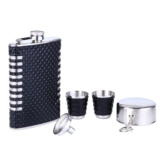 Подарочный набор 5 в 1 "Ромбы": фляжка 270 мл + воронка, 2 рюмки, стакан складной d=5 см