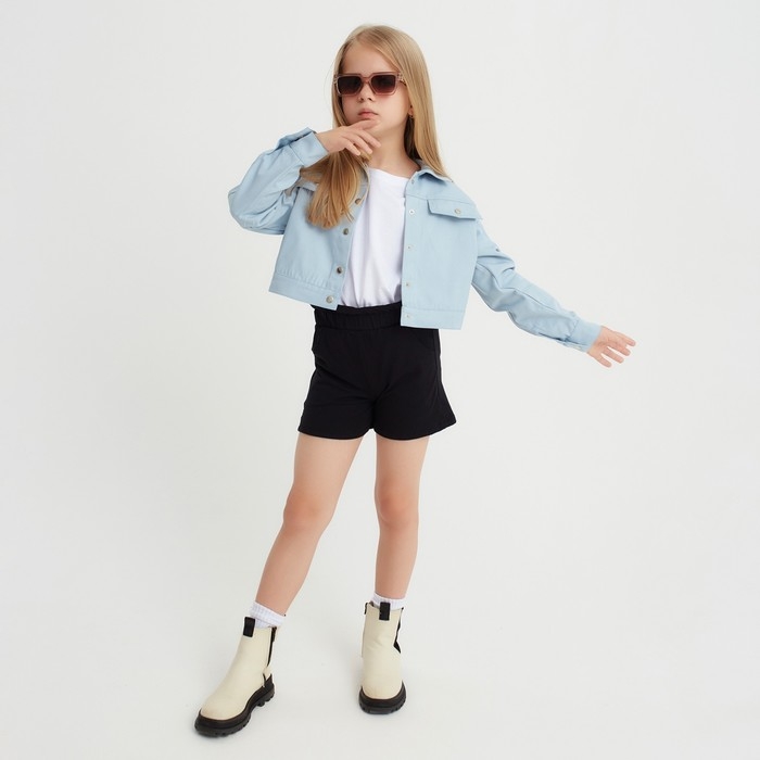 Рубашка для девочки джинсовая, укороченная KAFTAN, размер 32 (110-116 см), цвет голубой