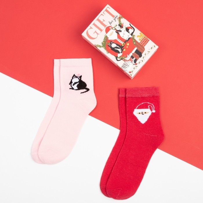 Набор новогодних женских носков KAFTAN "Gift" размер 36-40 (23-25 см), 2 пары