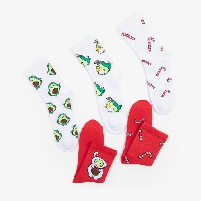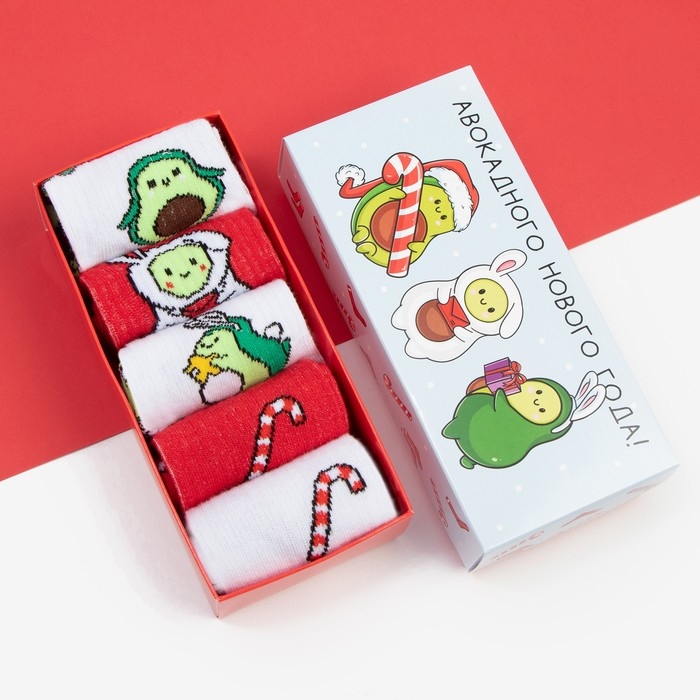 Набор новогодних женских носков KAFTAN "Авокадного года" размер 36-39 (23-25 см), 5 пар