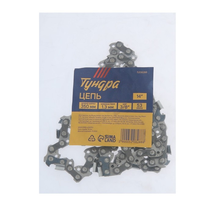 Цепь для бензопилы ТУНДРА, 14", 350 мм, ширина паза 1.3 мм, шаг 3/8", 53 звена