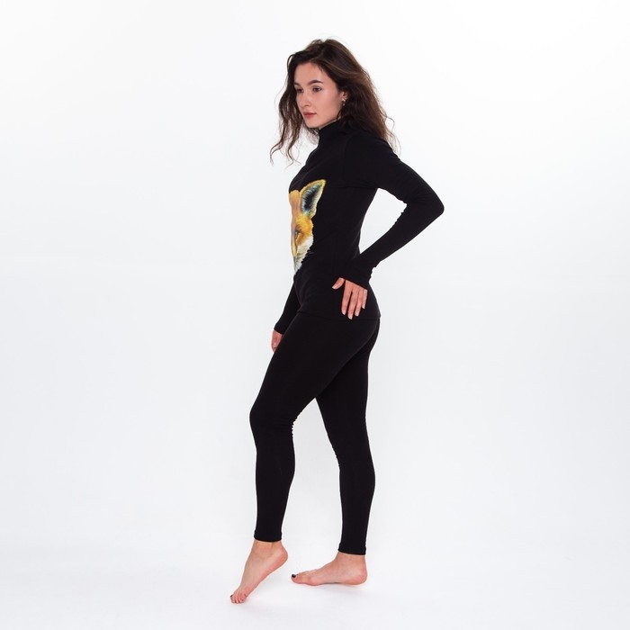 Термобельё женское (джемпер, леггинсы) принт лиса, цвет чёрный, размер 42