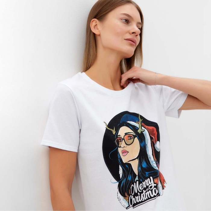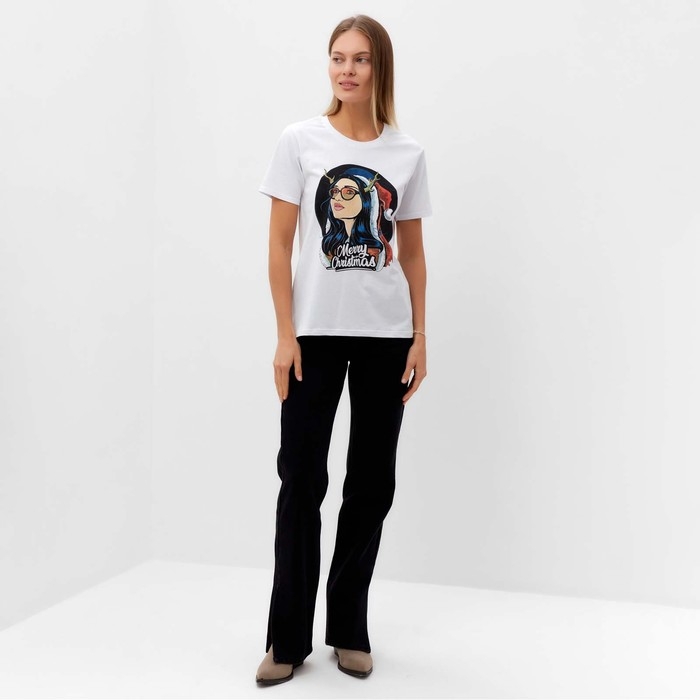 Футболка женская новогодняя Merry Christmas, цвет белый, размер 54